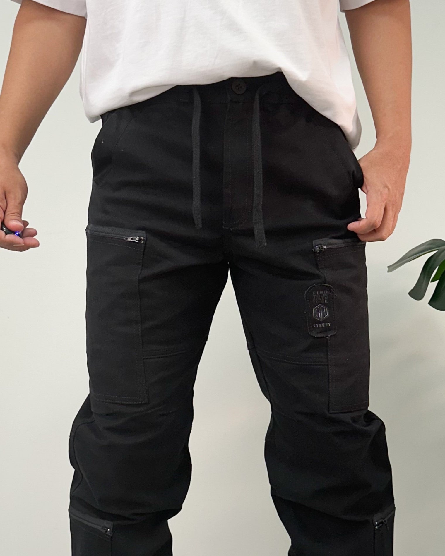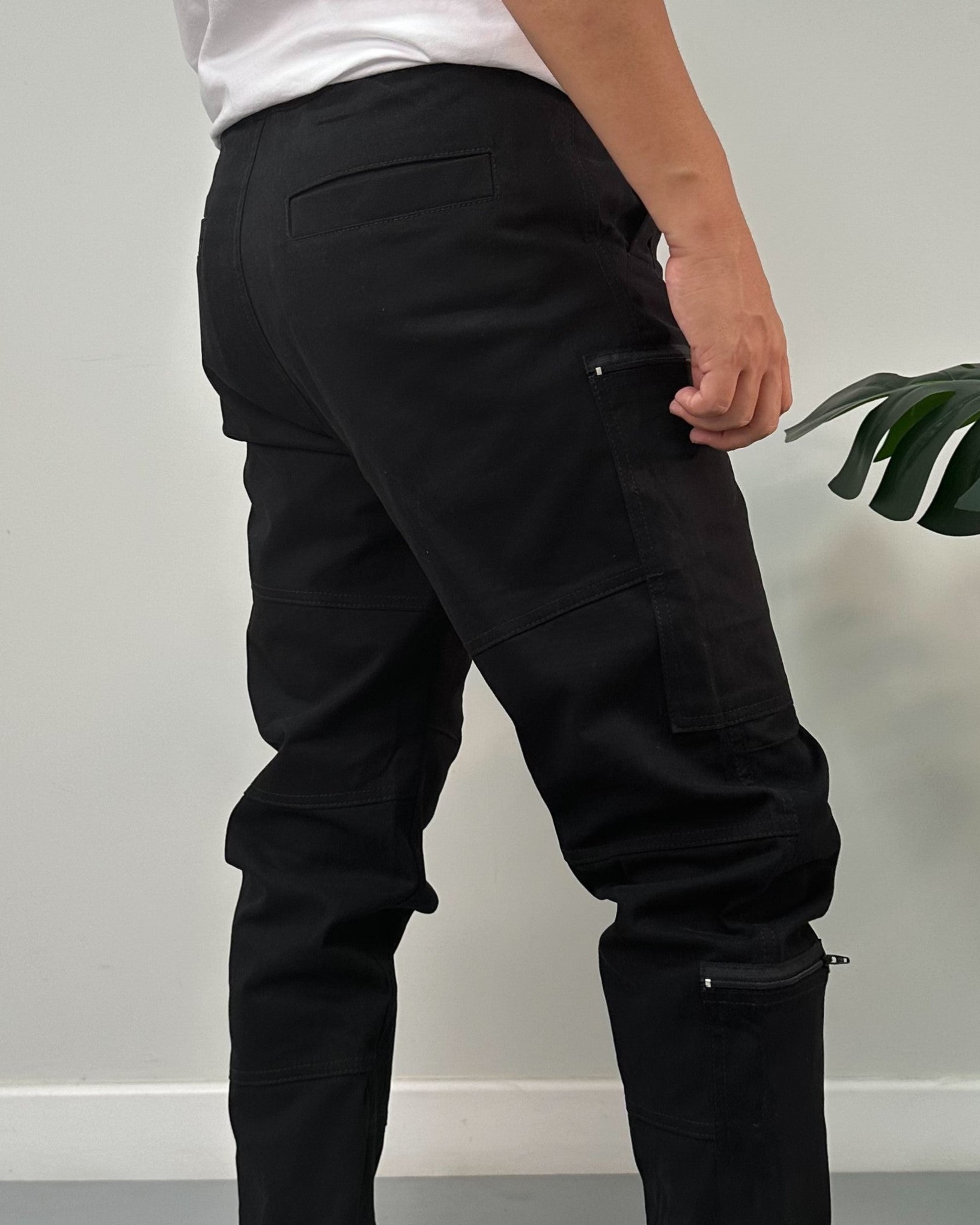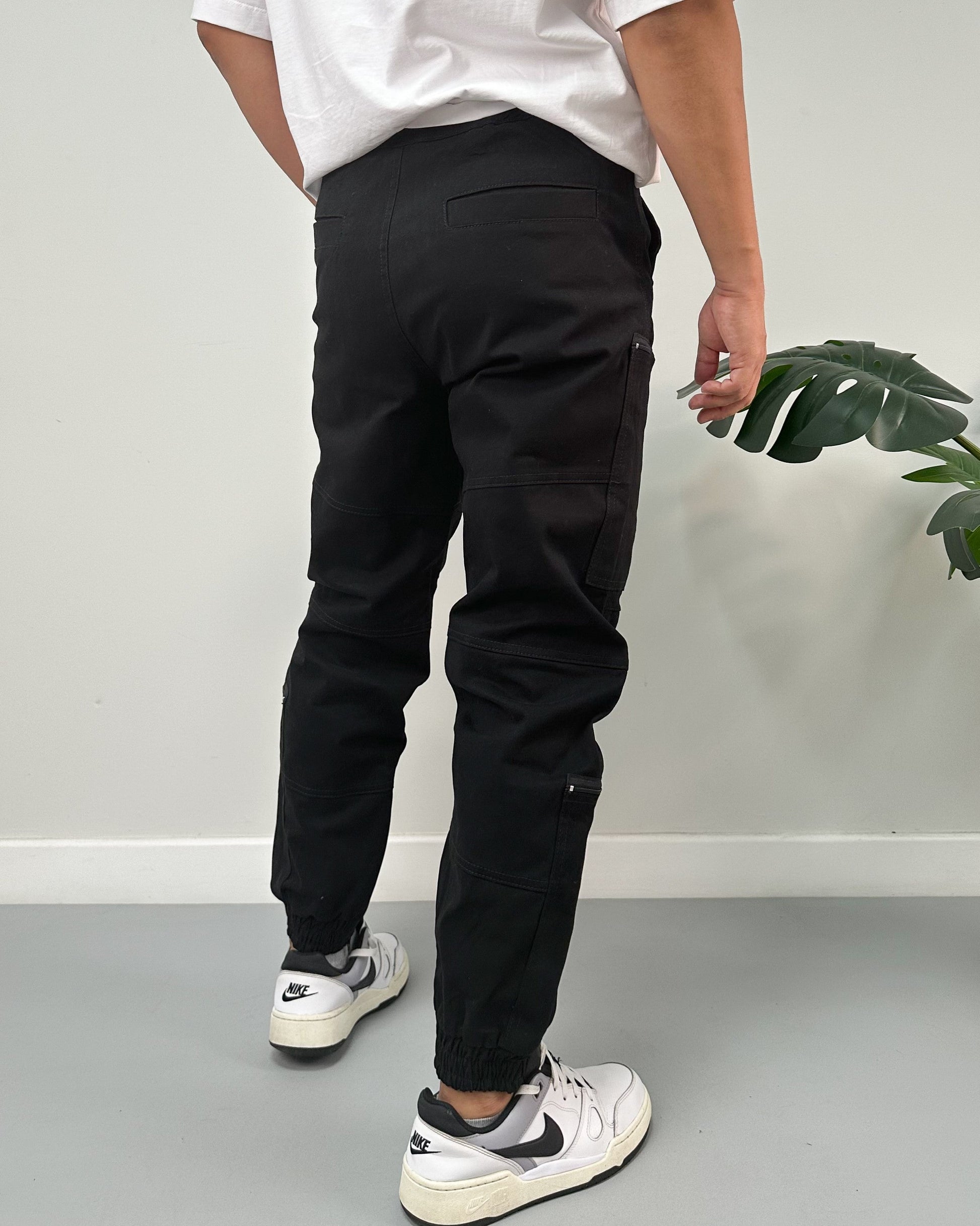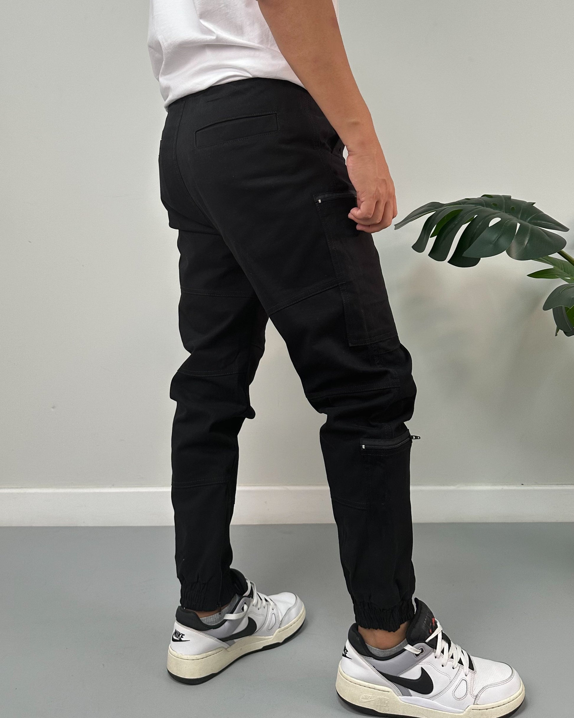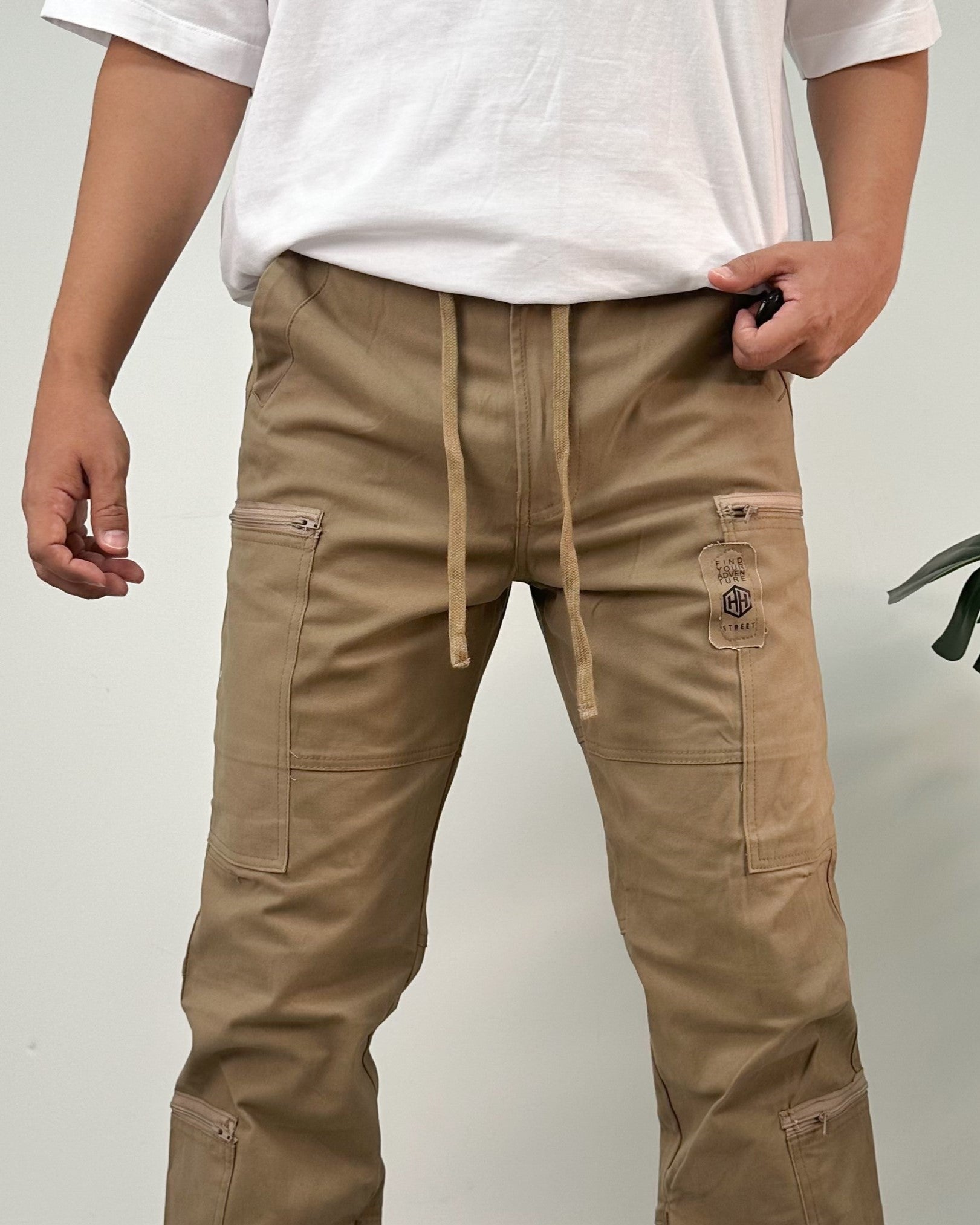 Jogger color negro, verde, kaki, taupe. El modelo utiliza talla 32.