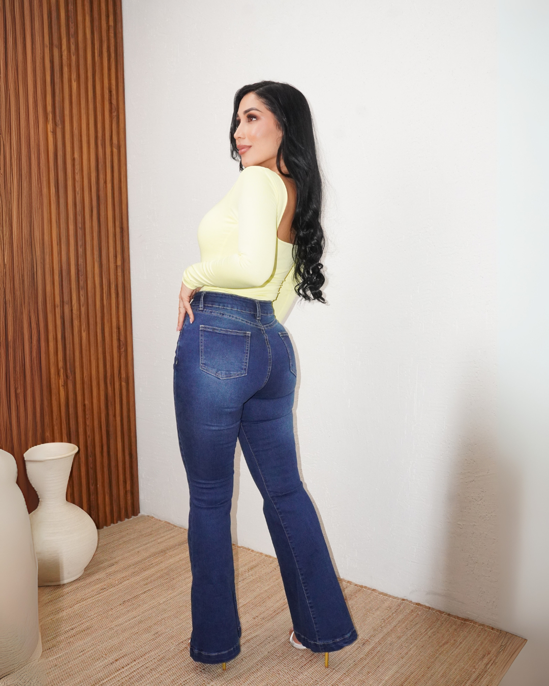 Este jean bota campana está diseñado para realzar tu figura con un ajuste perfecto gracias a su tela stretch de alta calidad, que se adapta cómodamente a tus curvas. Su silueta acampanada alarga visualmente las piernas y aporta un estilo moderno y sofisticado, ideal para combinar con tacones o sandalias.