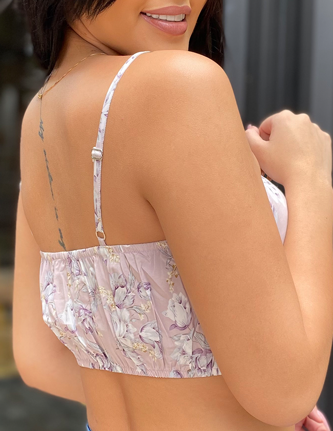Top simple, Tela dacrom estampado. La modelo usa talla S.