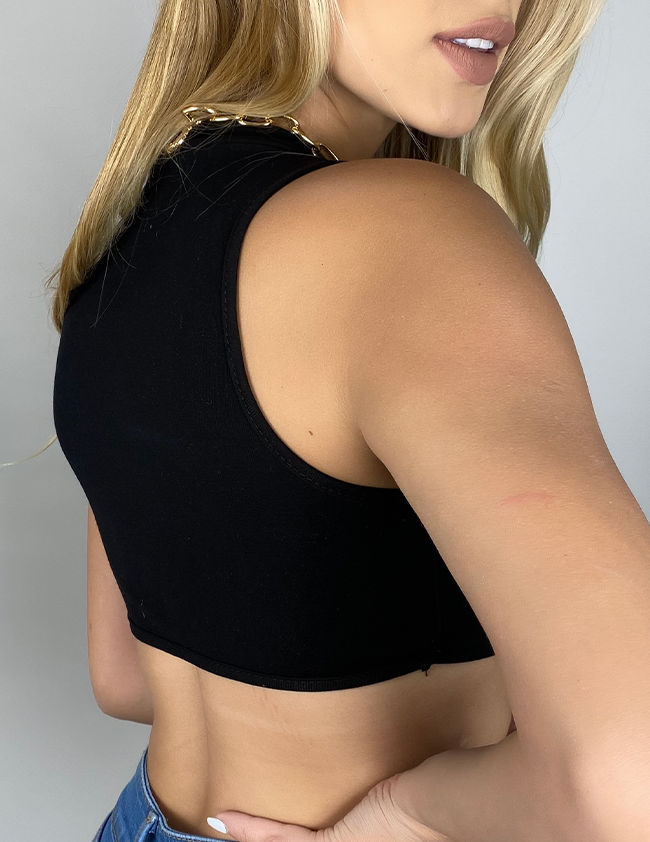 Crop Top, Manga sisa. Material algodón licrado. La modelo usa talla S.