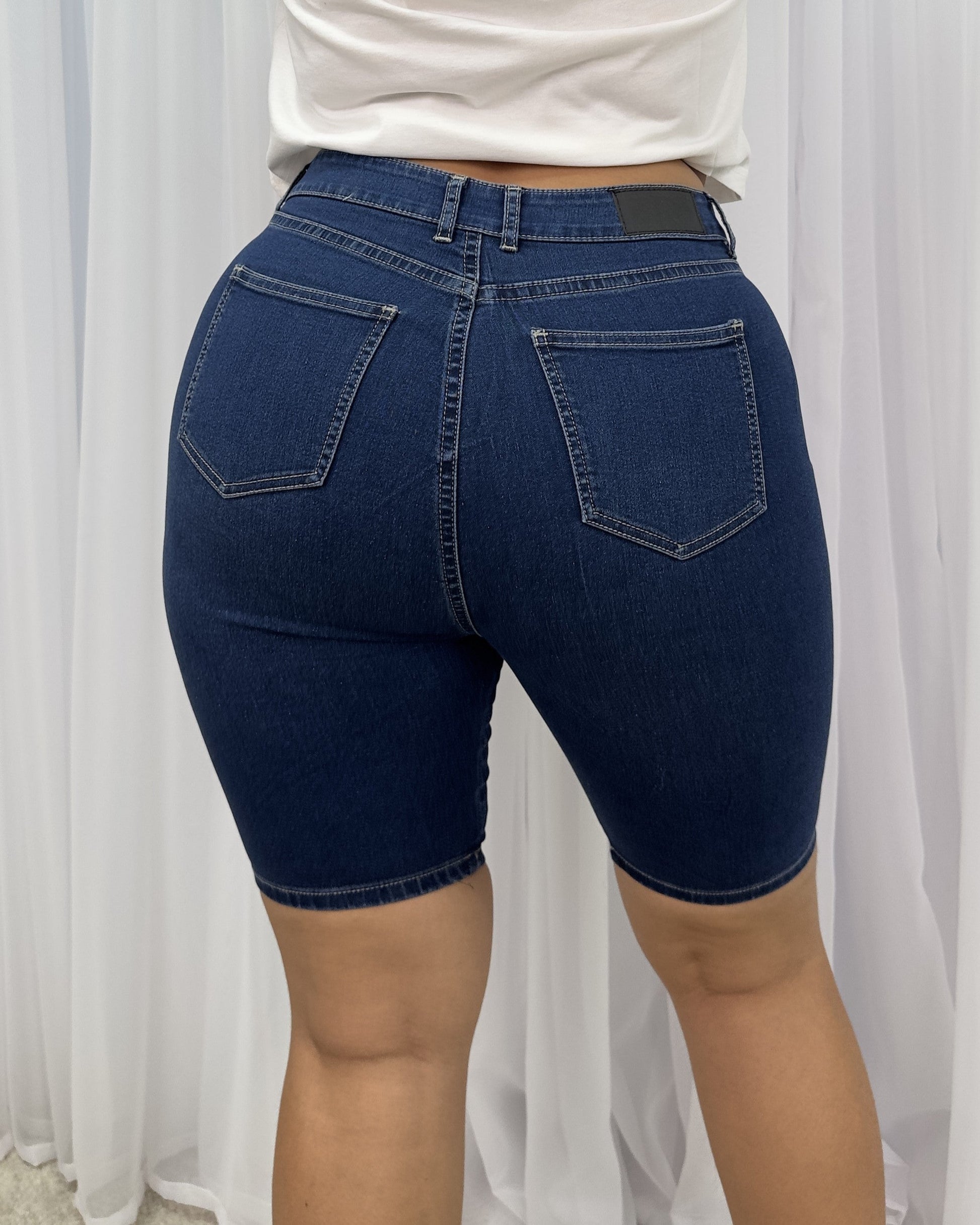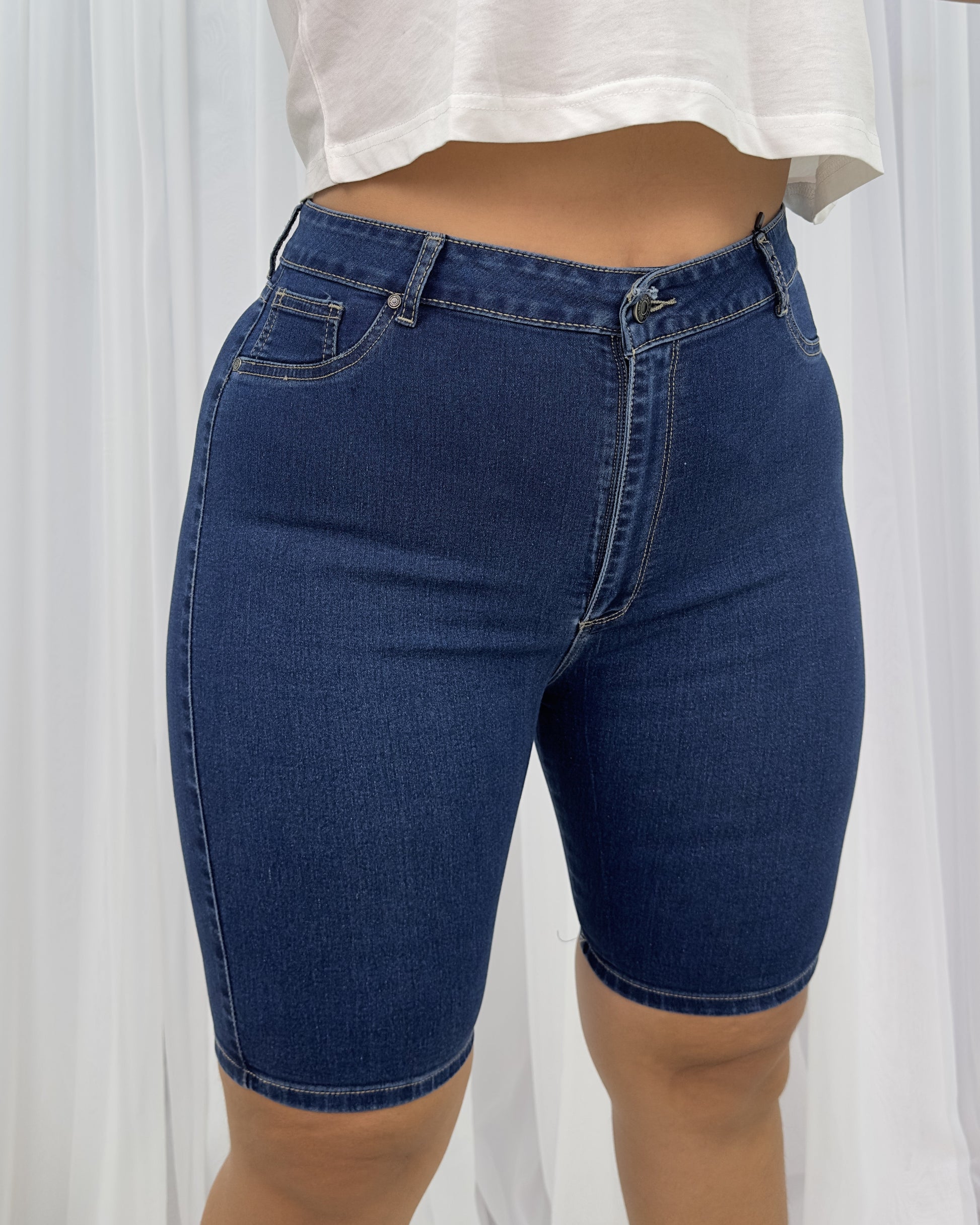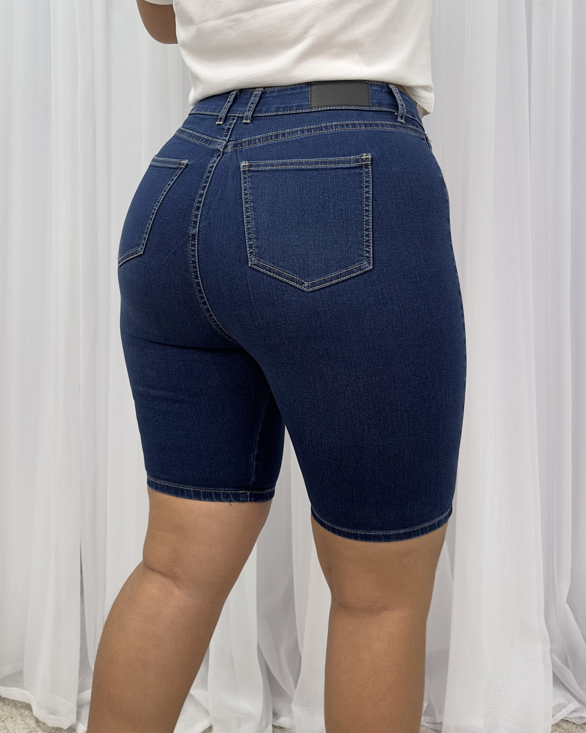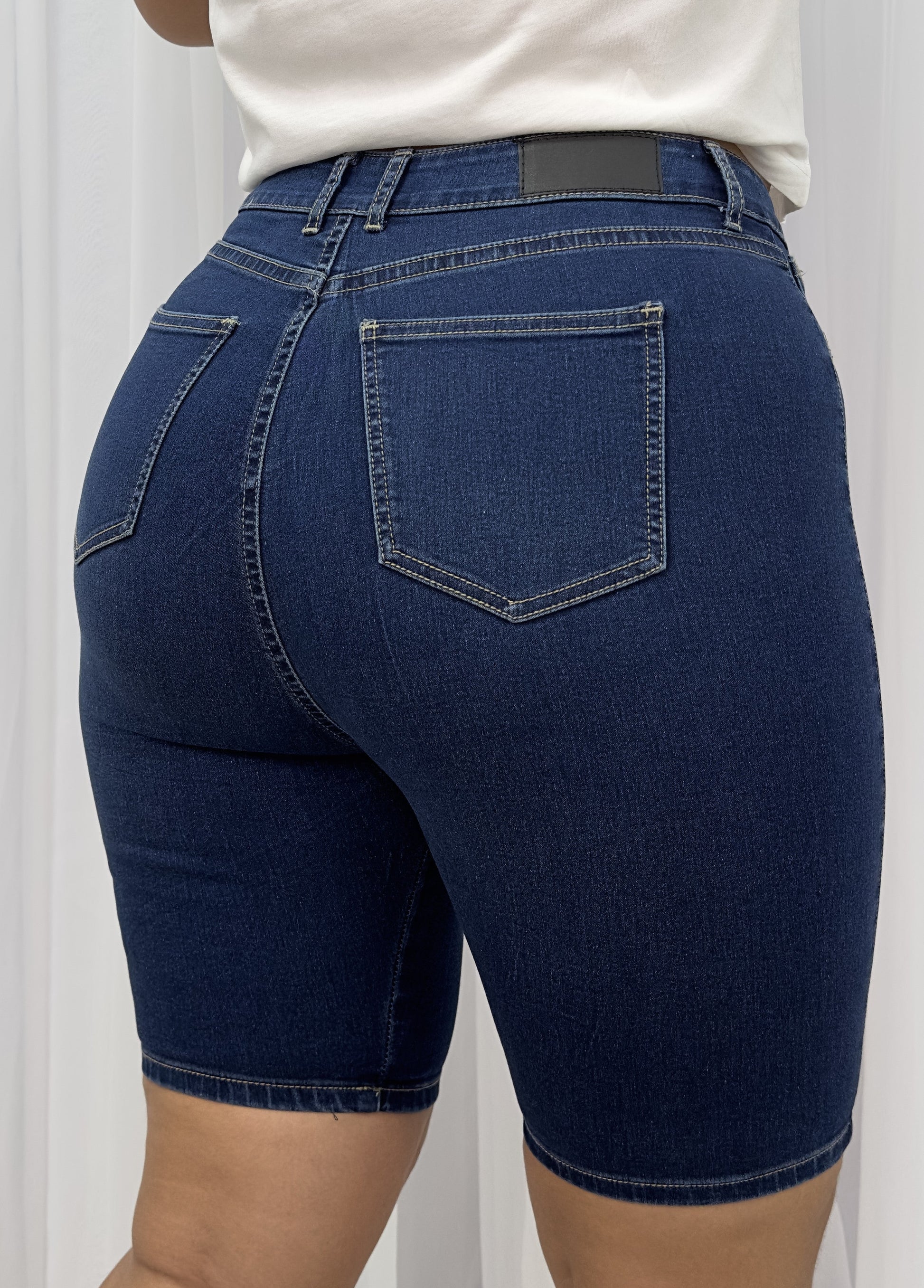 Torero Plus color azul oscuro, tela strech. La modelo utiliza talla 16.